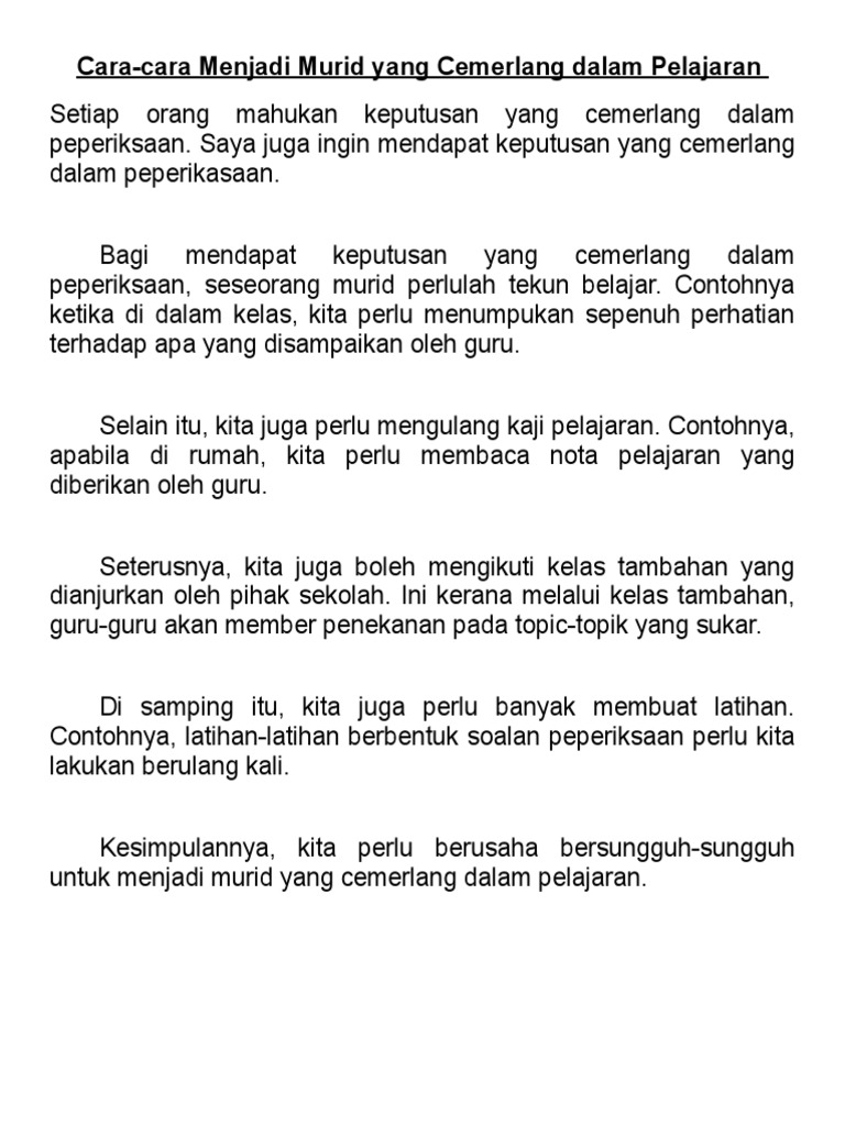 Contoh Karangan Cara Cara Menjadi Murid Cemerlang